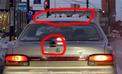 更にトランク上には、雪よけブラシが載せられたまま。