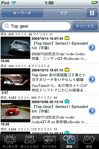 iPod touchでニコニコ動画やYouTubeをひたすら観てました(笑)。それも英国BBCのTop Gearを。それにしてもTop Gearは面白い。欧米ではDVD化されているのに、なんで日本語版は発売されないんだろうか・・・。amazonで検索すると北米版のDVDはシーズン10まで出てるみたいなのに。