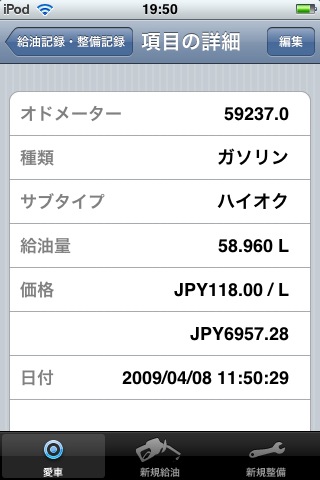 給油記録 (6.1km/L)