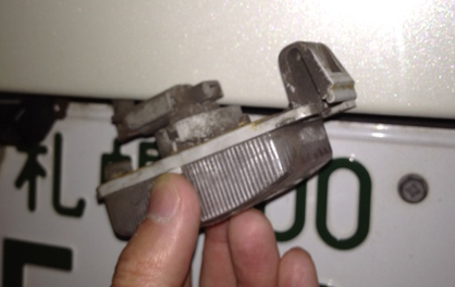 バルブが横向きで、下のナンバー灯を照らすという構造です。うん。