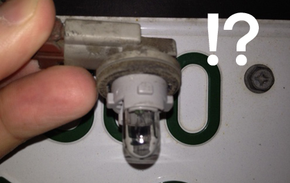 よくナンバー灯(T10のバルブ)を見ると、バルブが横向きに付いてるんですね。