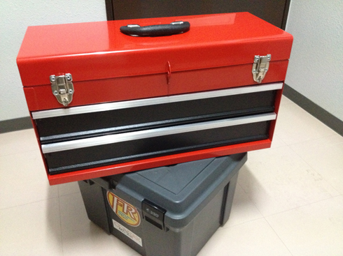 真っ赤な工具箱にステッカーとか貼ってソレっぽく仕上げるのも面白いカモ。